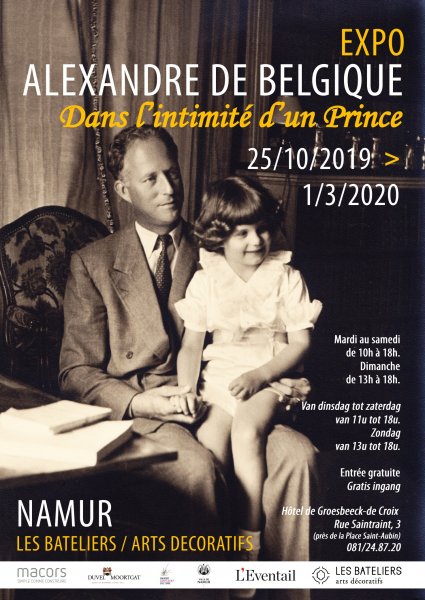 A l’occasion du 10ème anniversaire de la mort du Prince Alexandre (29/11/2009-2019), la Ville de Namur nous a donné l’opportunité exceptionnelle de présenter l’exposition dans un lieu superbe : « Les Bateliers / Arts décoratifs », l’Hôtel de Groesbeeck - de Croix, Rue Joseph Saintraint, 3, près de la Place Saint-Aubain, du 25 octobre 2019 au 1er mars 2020.